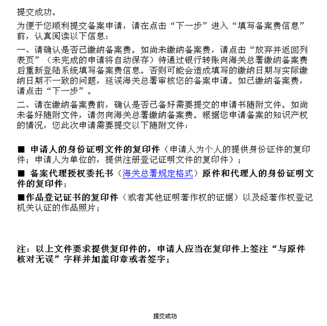 In order for the applicant to know whether his application will get approved before paying the registration fees, the system will display on this page the list of auxiliary documents required by the registration. If the applicant cannot provide all the auxiliary documents required, he shall click "Quit and Return to the List Page" to quit the application for registration and need not pay registration fees. The applicant may pay the registration fees after preparing all the documents required and sign in the system to resume entering the application data.