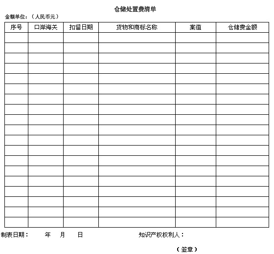 Checklist of Storage and Disposal Fees (CNY)